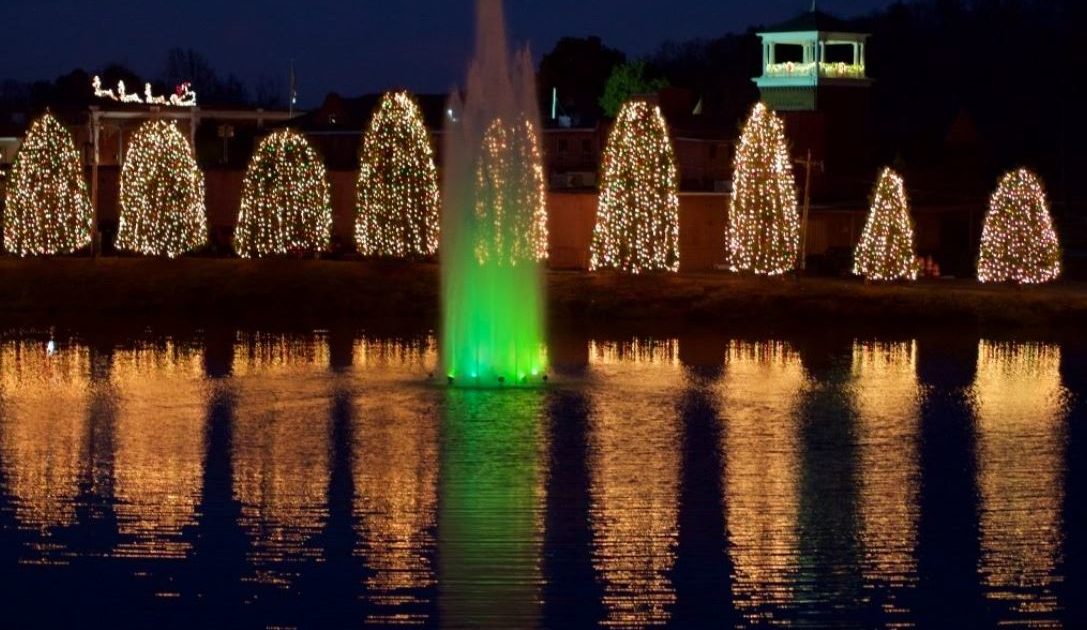 It all started in 1956, when the McAdenville Men’s Club along with Mr. W. J. Pharr, Pharr’s founder and president at the time, conceived the idea of using red, white and green lights to decorate the trees around the McAdenville Community Center.